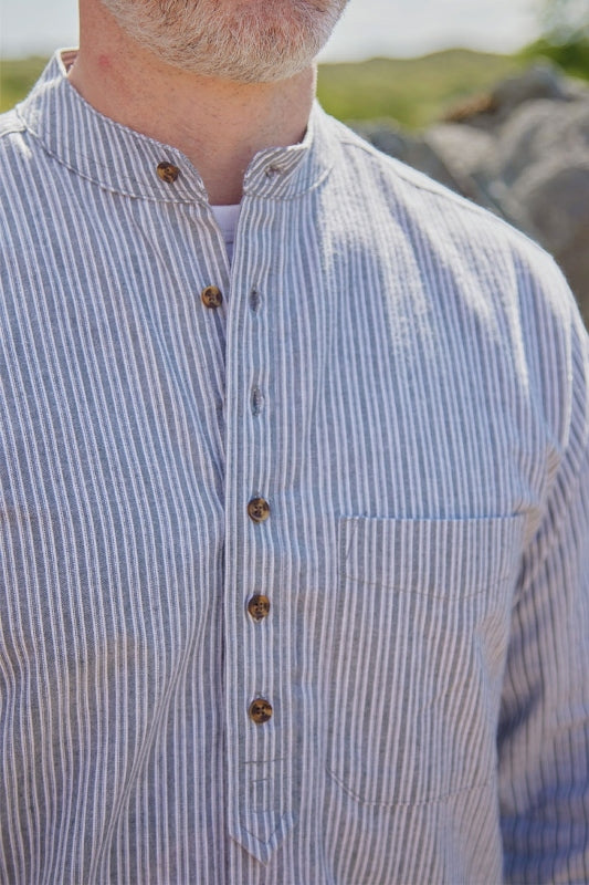 Chemise Grand-père Vintage en coton - Ivoire à rayures gris ardoise - Lee Valley
