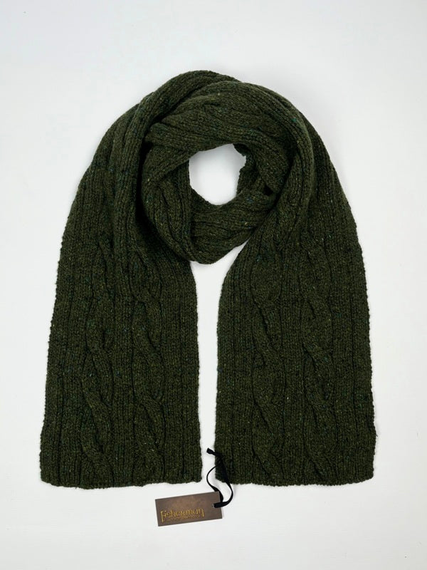 Cette écharpe à torsade et maille côtelée est tricotée en Irlande par Fisherman Out of Ireland. Cette écharpe classique et indémodable est parfaitement mise en valeur par une très belle laine mérinos mouchetée et tissée dans le comté du Donegal. Cette écharpe est douce, chaude et pleine de caractère comme le paysage irlandais.